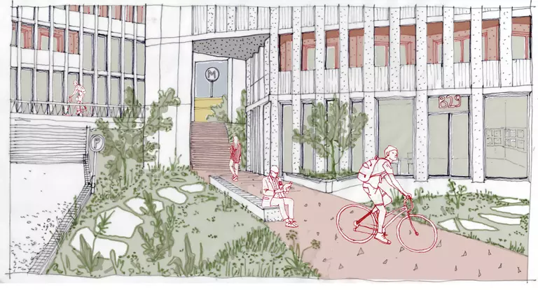 Sustainable water management is also central to the project, with rainwater retention and reuse systems minimizing waste. Existing materials, such as dismantled granite, will be repurposed into terrazzo panels, reducing construction waste.