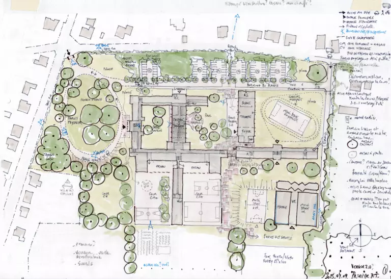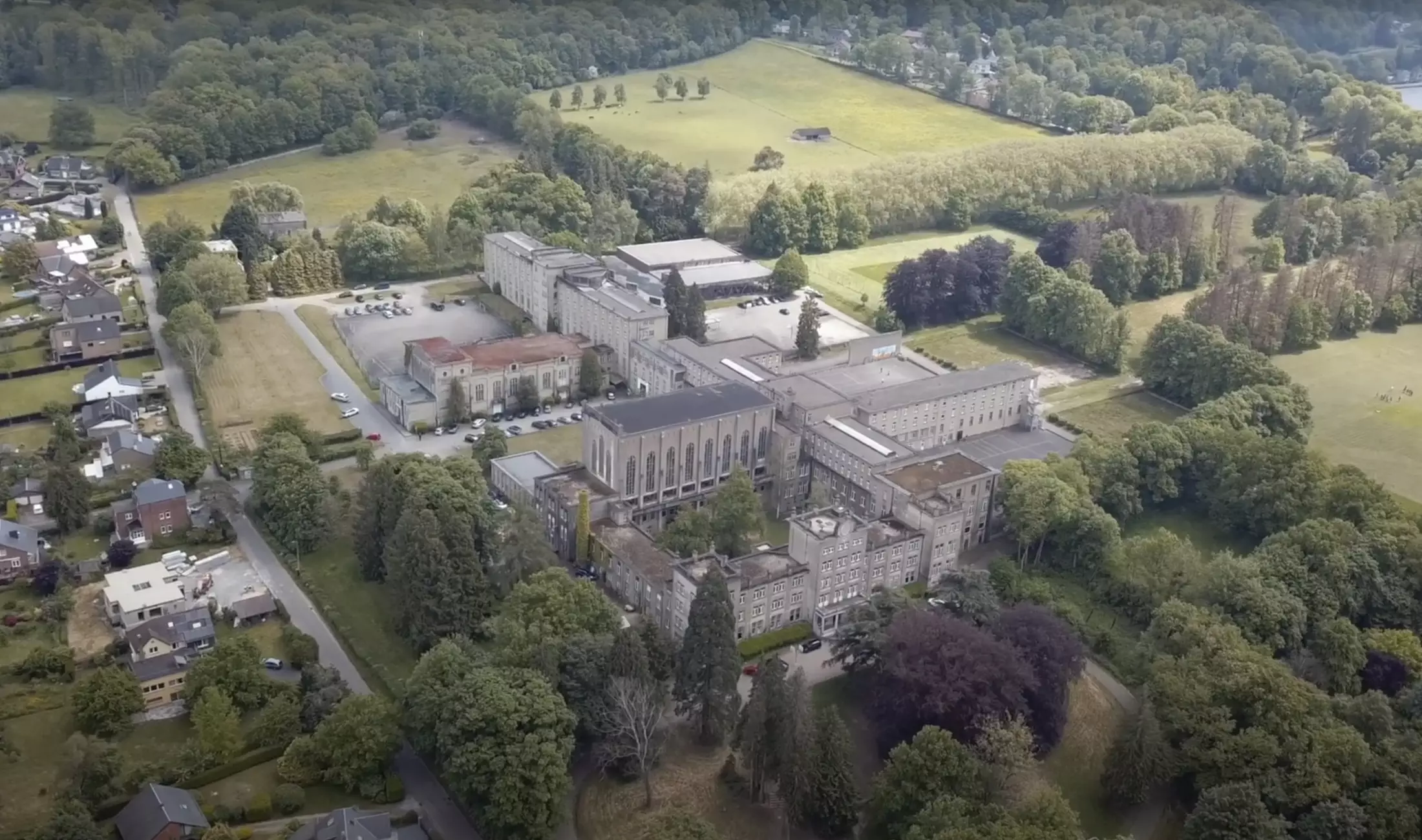 Built over a century ago, the Godinne complex is a boarding school inspired by the style of English colleges. It represents one of the earliest examples of concrete construction in Belgium. While the overall structure is characterized by its austerity, the original wooden window frames provide a contrast through their fine woodwork.