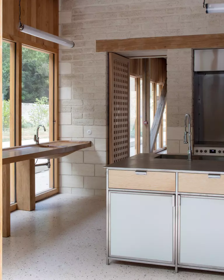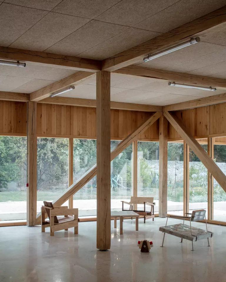 Continuing the materials research initiated by the LOT8 project, PAOLI applies a bioregional approach to construction, integrating local resources such as limestone blocks from the nearby Fontvieille quarry and compressed earth blocks made from quarry waste. A selection of local timber species - including oak for the structure, cypress for the exterior and Aleppo/Maritime pine for the interior - further roots the building in its regional context. The Paoli project thus serves as a model for resource-efficient, bioregional building practices that bridge heritage and innovation.